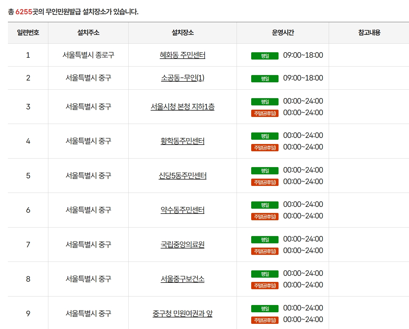 📌 참고: 일부 발급기는 특정 공휴일에 운영하지 않을 수 있으므로 방문 전 확인하세요.